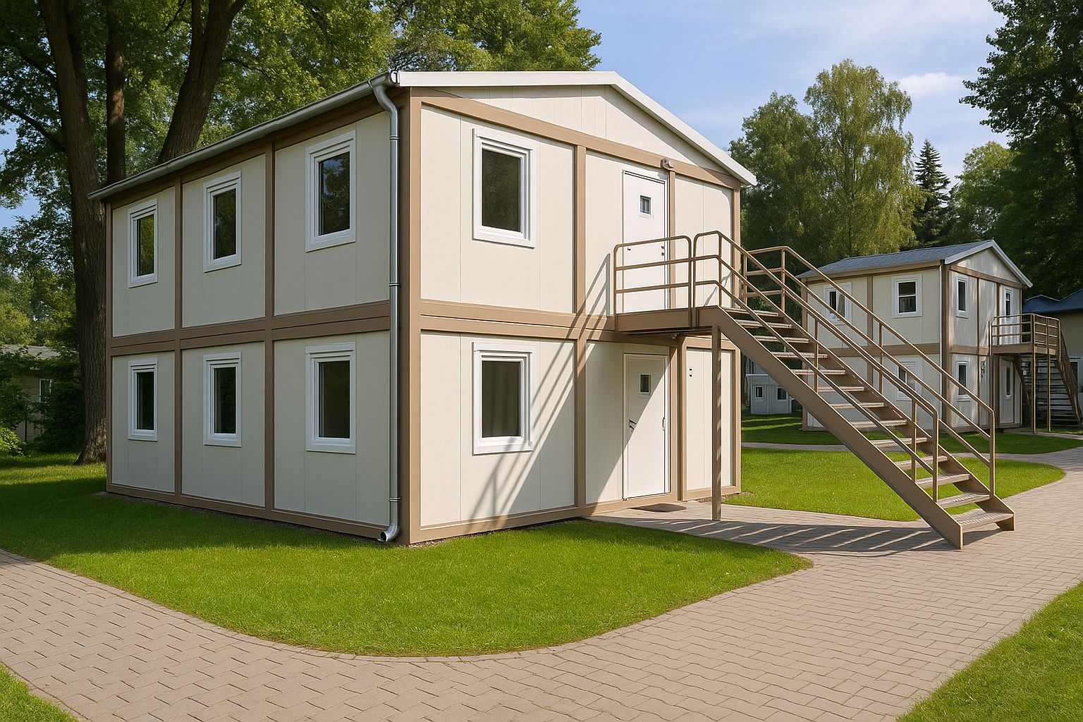 Livrarea se poate face rapid din stoc, iar instalarea unui container standard durează în general câteva ore. Pentru complexe modulare mari (birouri, dormitoare, săli de mese), timpul variază între 1–3 zile în funcție de structură.
